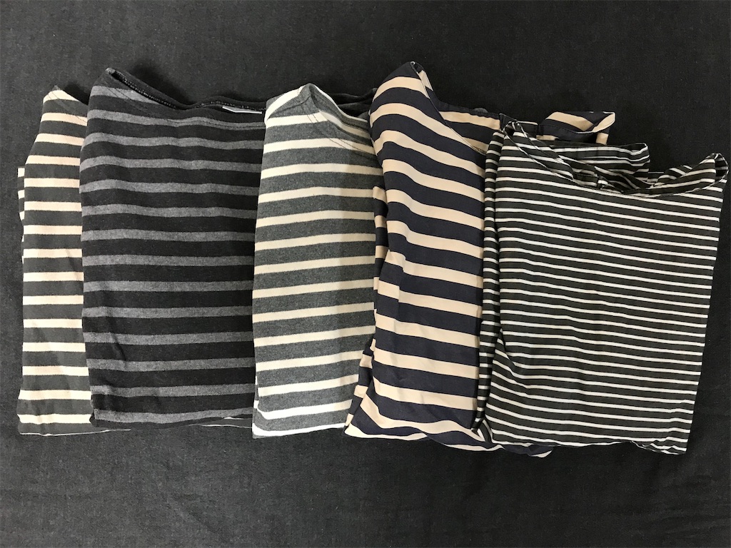 この通り、既にグレーのボーダーは5枚持ってます。しかもぜんぶボートネック。